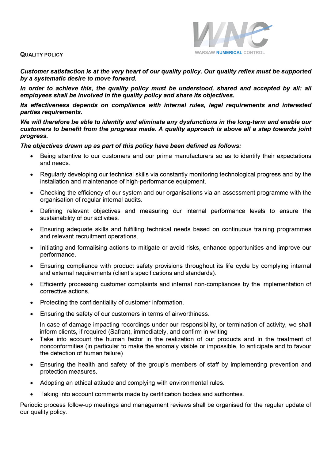 WNC capabilities - machine and material